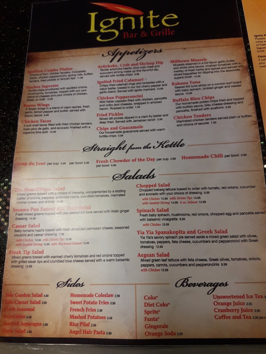Guests can enjoy indulgent seafood specialties like the hearty Seafood Cioppino or Lobster Mac and Cheese, as well as fresh Raw Oysters on Ice. For a taste of New England, the Lobster Roll offers a familiar, satisfying experience. Alongside these, you’ll find seasonal salads, charbroiled burgers, and creative takes on classics like British Fish and Chips or Bacon Wrapped Scallops.